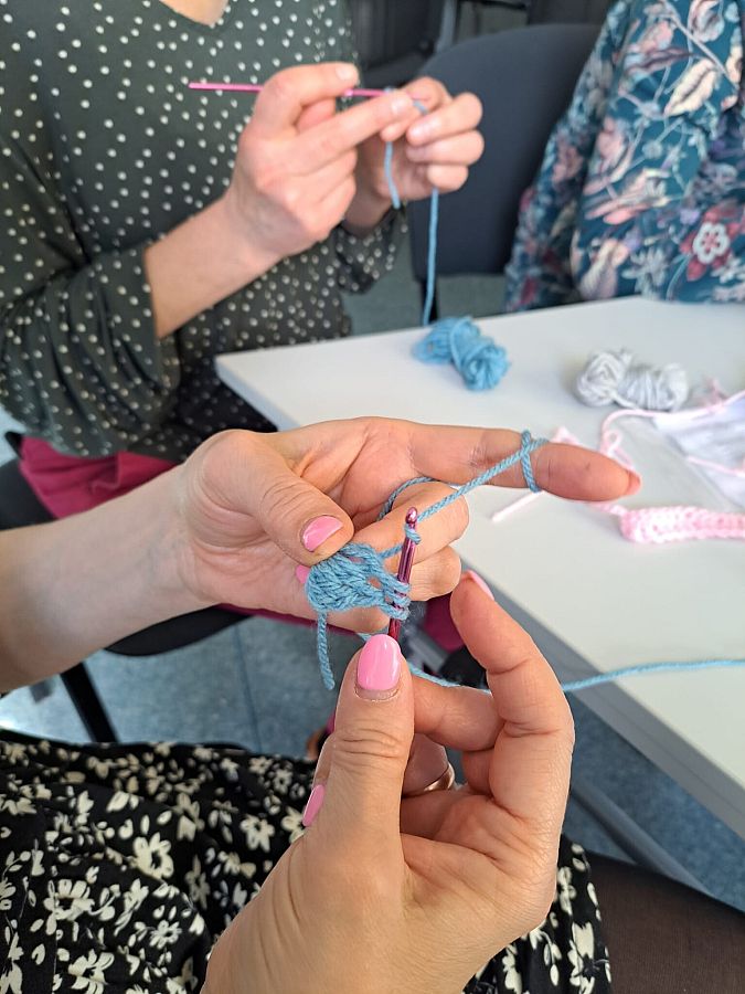 18 kwietnia 2024 r. odbyło się szkolenie pn. „Sztuka ludowa a nowoczesność-podstawy szydełkowania”, na którym nauczyciele mieli możliwość zapoznać się z różnorodnością form sztuki ludowej i nowoczesnych trendów artystycznych, a także zrozumieć znaczenie sztuki ludowej jako części dziedzictwa kulturowego. Uczestniczki warsztatów spróbowały również swoich sił w szydełkowaniu i wykonały własnoręcznie piękne ozdoby.