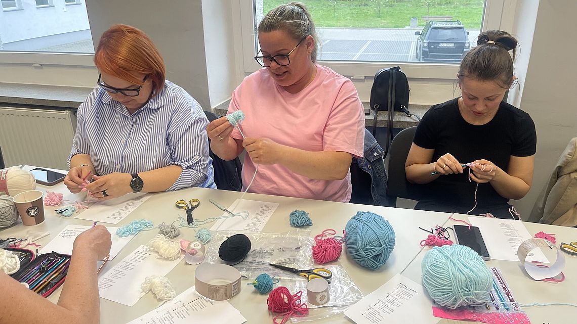 24 kwietnia 2025 r. w Pomorskim Ośrodku Doskonalenia Nauczycieli w Słupsku odbyło się szkolenie dla nauczycieli pt. „Szydełkowanie jako forma relaksu i arteterapii”. Spotkanie zgromadziło nauczycieli różnych specjalności, poszukujących nowych metod pracy z uczniami, a także sposobów na własne odprężenie i twórcze wyrażanie siebie. Podczas warsztatów uczestnicy poznali podstawy szydełkowania oraz możliwości wykorzystania tej techniki jako narzędzia wspierającego relaksację i rozwój emocjonalny. Zajęcia obejmowały naukę podstawowych ściegów oraz tworzenie prostych, dekoracyjnych form. Warsztaty odbywały się w atmosferze spokoju i uważności, z dużym naciskiem na terapeutyczny i relaksacyjny charakter pracy manualnej. Podsumowaniem spotkania była prezentacja wykonanych prac oraz inspirująca wymiana doświadczeń i pomysłów na wykorzystanie szydełkowania w codziennej praktyce edukacyjnej i wychowawczej.