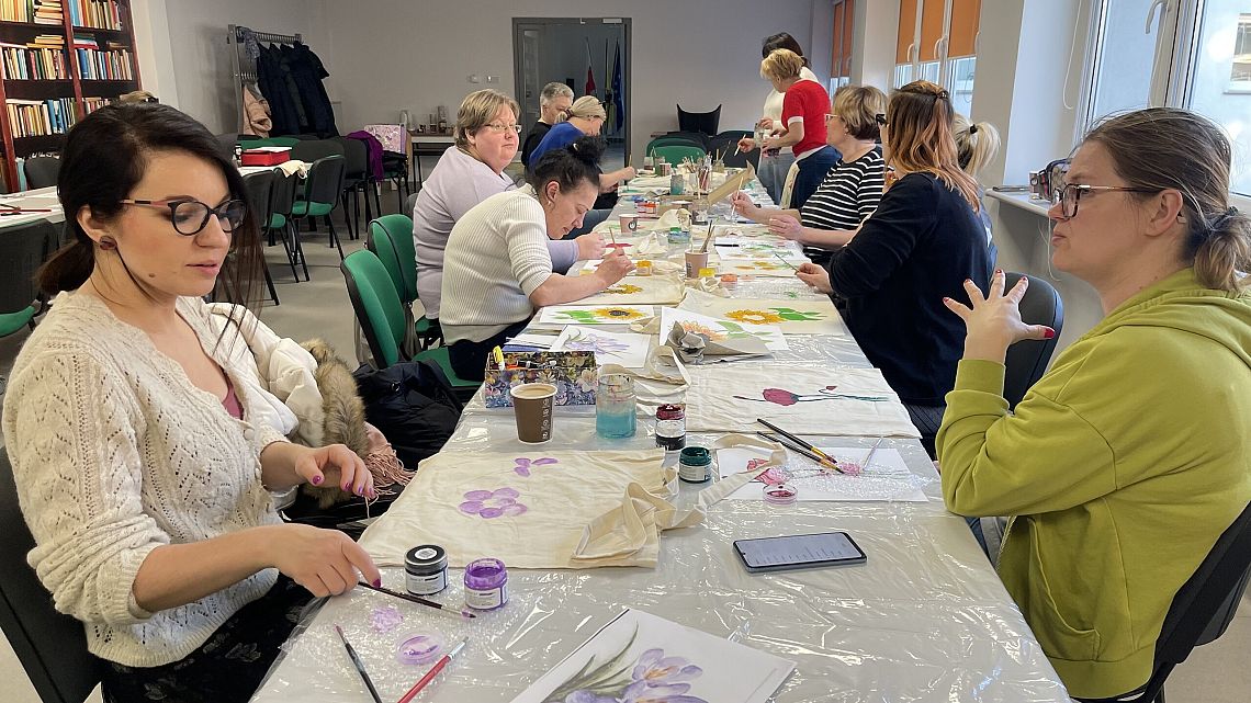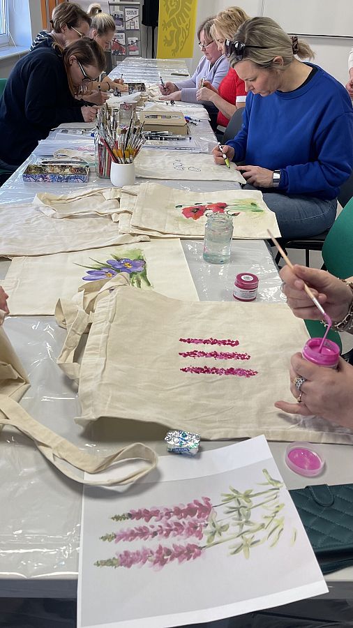 6 marca 2025 r. w PODN w Słupsku odbyło się szkolenie dla nauczycieli edukacji przedszkolnej i wczesnoszkolnej pn. „Wiosna radosna”, zorganizowane w ramach Sieci Współpracy i Samokształcenia „Inspiracje muzyczno-plastyczne w edukacji dziecka”. Celem szkolenia było rozwijanie warsztatu pracy nauczyciela – zdobycie nowych pomysłów na kreatywne zajęcia dla dzieci, łączące plastykę i muzykę, doskonalenie umiejętności malowania na tkaninach – poznanie technik i narzędzi umożliwiających tworzenie trwałych, estetycznych wzorów na torbach materiałowych oraz integracja uczestników poprzez wspólne działania artystyczne inspirowane wiosennymi motywami i muzyką. Uczestnicy stworzyli własne, unikalne torby materiałowe ozdobione wiosennymi motywami przy użyciu farb do tkanin. Akcentem muzycznym było wspólne wykonanie na instrumentariu Orffa dwóch utworów muzyki klasycznej , której inspiracją była wiosna: "Odgłosy wiosny" - Johana Straussa oraz Walc kwiatów" - Piotra Czajkowskiego. Uczestnicy nauczycli się również i zagrali na dzwonkach piosenkę pt. "Powitalny koncert". Szkolenie „Wiosna radosna” było nie tylko okazją do zdobycia nowych umiejętności, ale także momentem relaksu, twórczej ekspresji i czerpania inspiracji z muzyki i otaczającej przyrody oraz dostarczyło inspiracji do prowadzenia zajęć artystycznych w szkołach i przedszkolach.