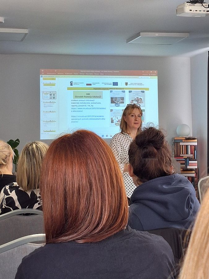 Tematem spotkania była "Praca z grupą przedszkolną/klasą I-III o zróżnicowanych potrzebach edukacyjnych". W roli eksperta wystąpiła Renata Jastrzębowska, nauczyciel dyplomowany, pedagog specjalny w Szkole Podstawowej w Kończewie.
