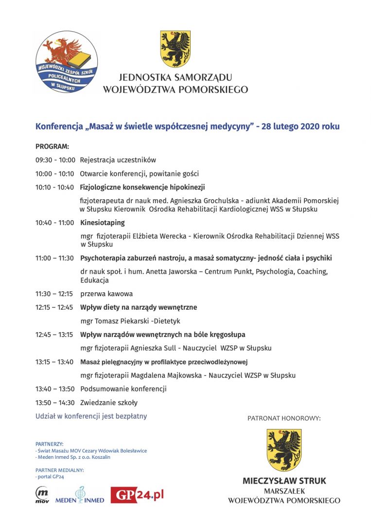 Wojewódzki Zespół Szkół Policealnych w Słupsku zaprasza do udziału w bezpłatnej Konferencji "Masaż w świetle współczesnej medycyny", która odbędzie się 28 lutego 2020 r.